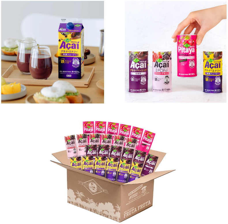 アサイースムージー&ピタヤスムージー 4種のドリンク バラエティセット (195g×24本):https://shop.frutafruta.com/products/f-293
