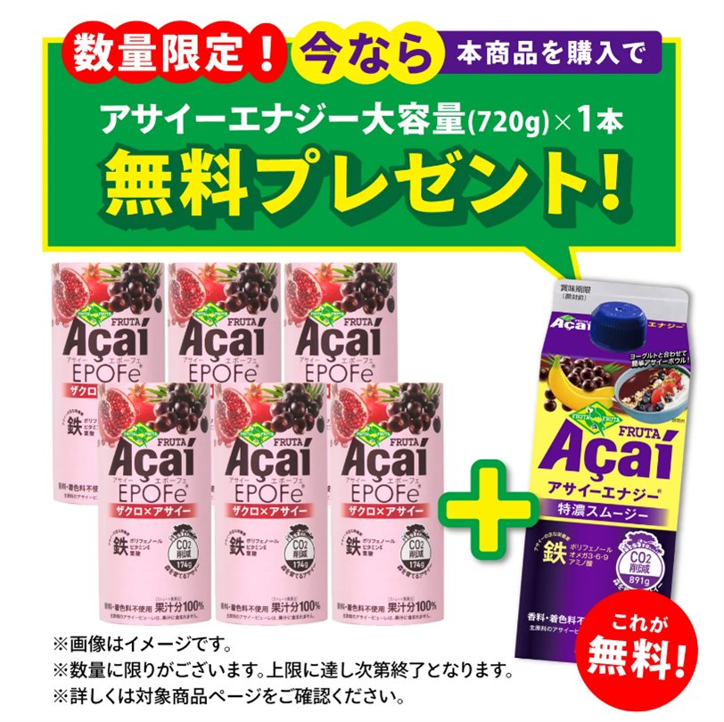 アサイーEPOFe(エポーフェ) ザクロxアサイー 195g カート缶 飲みきりサイズ:https://shop.frutafruta.com/products/f-188